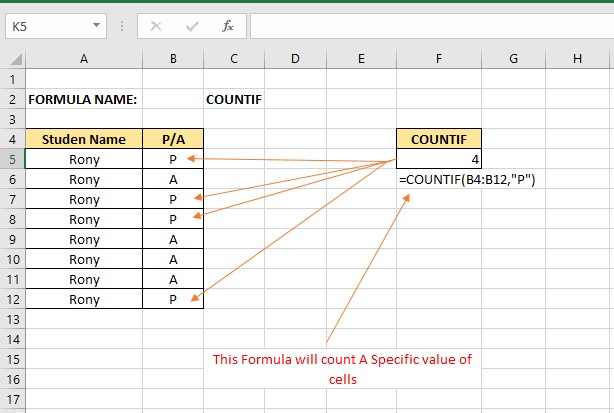 The COUNTIF function in Excel counts the number of cells within a specified range.