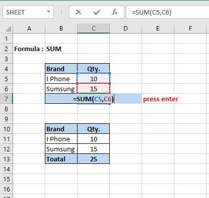 Using SUM Formula you can addition between two number or multiple numbers accourding your choice.