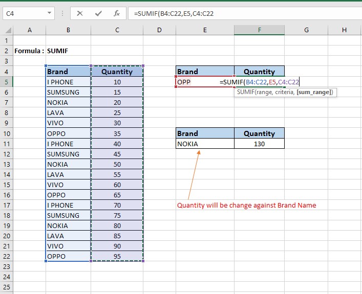 Using SUMIF Formula you can find out sum value against your criteria (search key) of selected sum range.