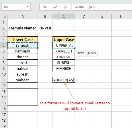 Using UPPER Formula you can transform your data Small letter to Capital letter.
